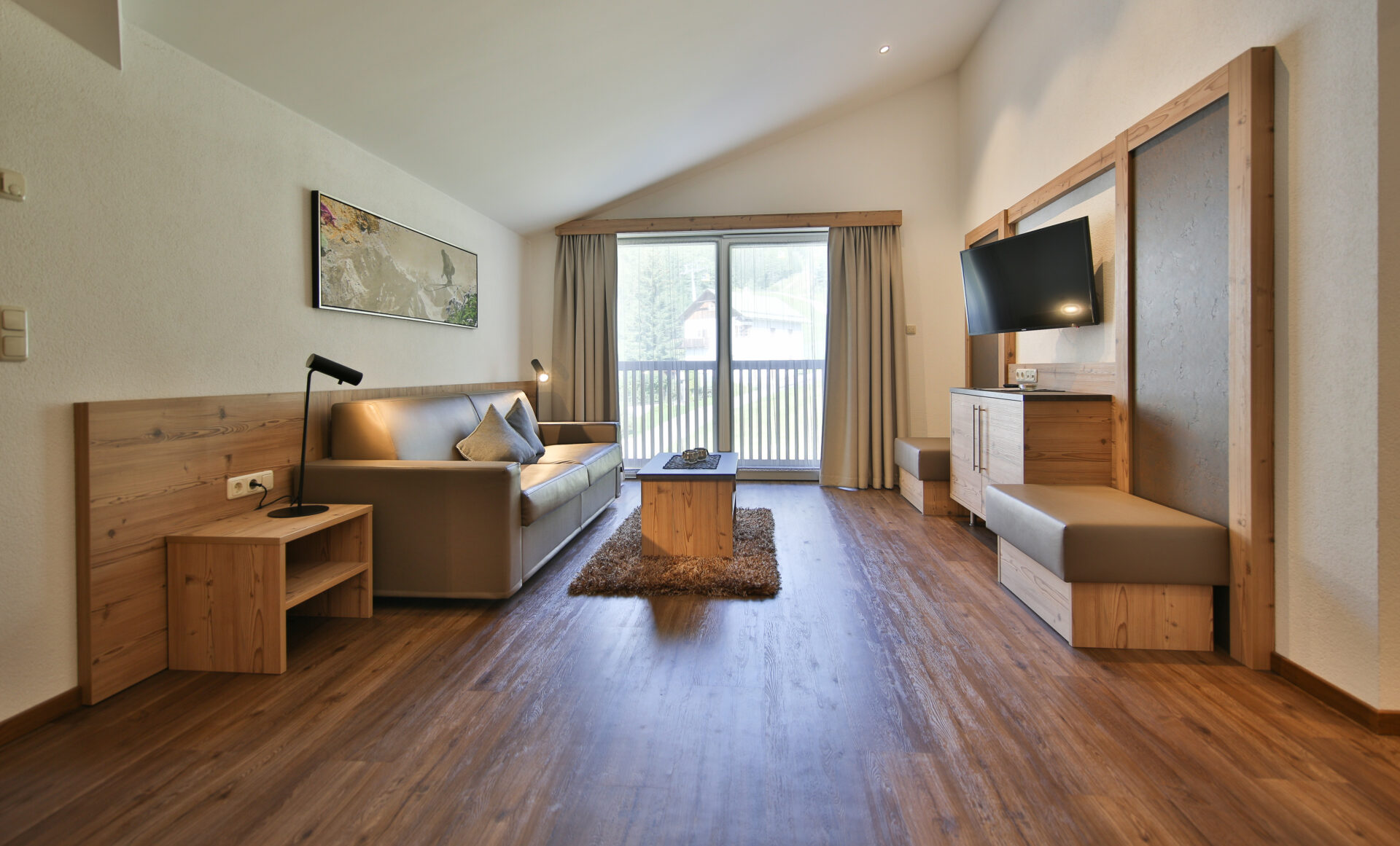 Zur Ausstattung gehören zudem WLAN, TV und Telefon. Auf dem Balkon mit Tisch und Sesselnkönnen Sie die frische Luft genießen. Bettwäsche und Handtücher werden gestellt, und ein Ski- und Schuhraum steht ebenfalls bereit – perfekt für Ihren Winterurlaub.